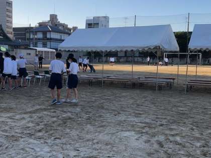 雨で順延していた体育大会の準備を昨日と今日の朝早くから多くの生徒と教員が準備をしてくれました。雨でグランド状態が悪かったところも整備してくれましたし,一度台風のため解体したテントも組み立ててくれました。多くの生徒が非常に頑張って動いてくれたようです。今日は朝から晴天です。最高の体育大会になるようみんなで協力してやり切りましょう!
