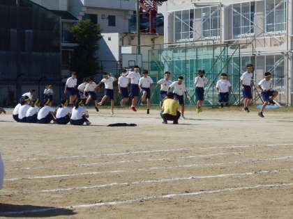 10時10分現在,1年生大縄跳びを行っています。次は2年生大縄跳びの予定です。