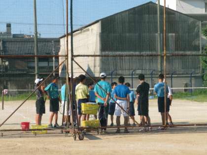 朝から,ソフトテニス部が,