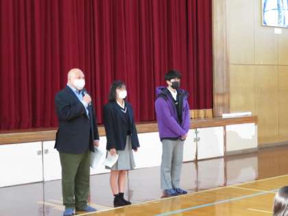 修学旅行委員長の挨拶に引き続き,