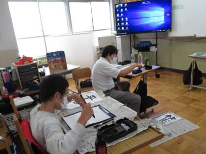今日は,習字をしています。