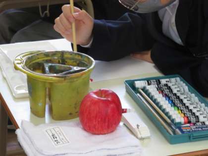 美術は,りんごのデッサン,