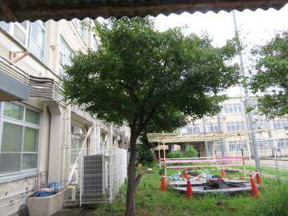 職員室南側の楓の木に,
