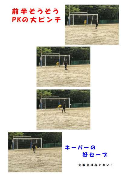 前半は、いきなりゴール前のは反則からPKを与えてしまい、大ピンチ。