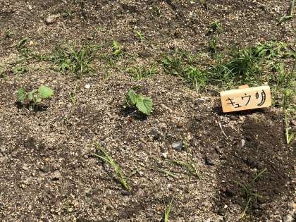 1組の畑に野菜の苗を植え、これから世話をして収穫をする予定です。