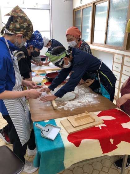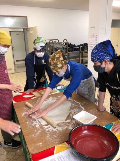 こね終わった蕎麦のかたまりはしばらく寝かします(放っておきます)。