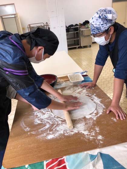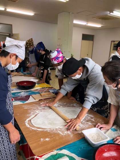 伸ばしています。うまい蕎麦を作るために力が入ります。