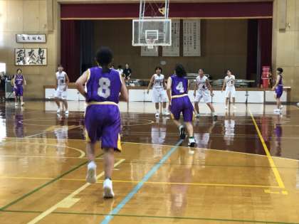 第2ピリオド中盤で、12-28と押されています。がんばれ、松原中。