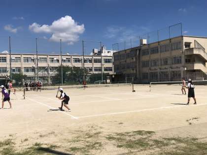 春日丘中との対戦。第一ペアが勝利。第二ペアもリードしています。