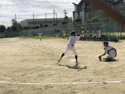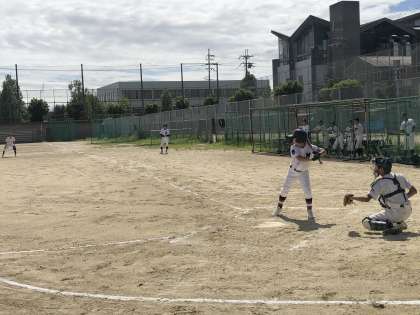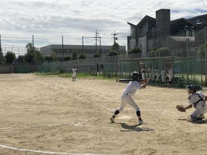 9月23日、洛南中学校で、野球新人戦予選リーグ戦第3戦が行われました。今回の相手は九条中学校です。先攻は本校で初回は0点、その裏相手に5点とられる苦しい立ち上がり。