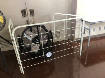 今年いただいた大型扇風機2機です。ガードがついており、安全です。保護者の皆様、ありがとうございました。
