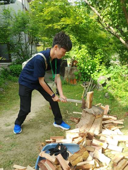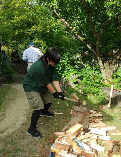 薪割りしてます。真っ二つです