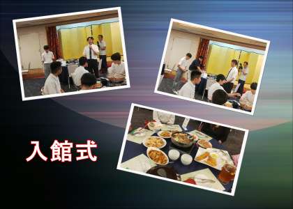ホテルに到着し、実行委員が入館式で挨拶をしています。その後夕食です。
