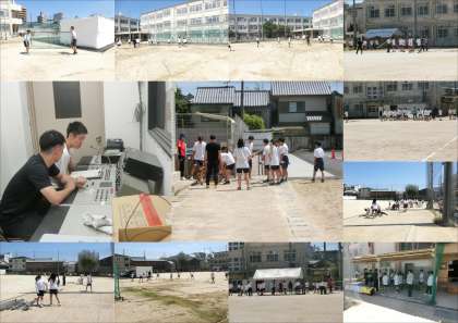 明日の体育退化に向けて、体育委員長から明日の諸注意が放送でありました。放課後は各委員会が分担して、ネットの移動やグランド整備やテントを立てるなどの準備をしました。