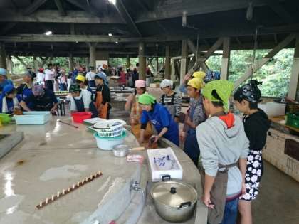 「まぜのおか」に到着。いよいよ「カツオのたたき作り体験」です。インストラクターからの指示を受けて、体験開始です。