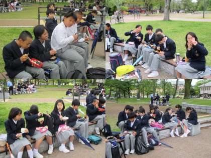 ロームシアター京都横の公園で,班ごとに昼食を食べました。