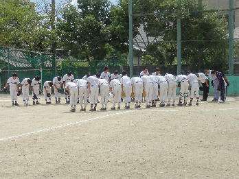 9月12日(日)の11時15分から北野中学校で,烏丸中学校との試合がありました。野球は中京中学校の合同チームになって早くも公式戦3試合目です。だんだんとチームワークができあがってきたのか今日は,安心して見ていることが出来る試合でした。相手に得点を許すことなく,5回コールドで勝つことが出来ました。よく頑張れたと思います。次の試合も今以上の力を発揮して頑張って下さい。また,保護者の皆様方の応援ありがとうございました。これからももよろしくお願いします。