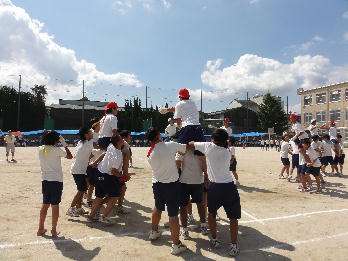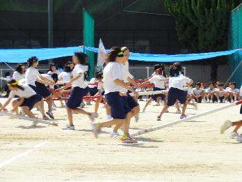 学年競技 1年 大縄飛び 2年 棒引き 3年 騎馬戦 の様子です。 どの学年も頑張っています。