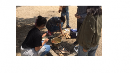 2年生は、滋賀県の松の浦キャンプ場へ校外学習に行きました。昼食は湖畔で協力して作りました。
