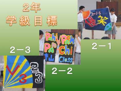 1−1〜3−3までの「学級目標」と「学級旗」を披露しました。