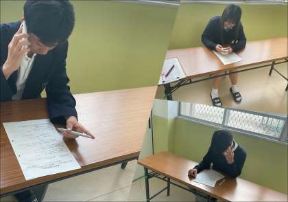 2年生は、12月に実施される「生き方探究チャレンジ体験」に向けて、放課後にお世話になる事業所の方へ電話連絡を行いました。事前訪問の日時を確認する大切な場面で、生徒たちはとても緊張した様子でしたが、礼儀正しく丁寧に対応することができました。この経験を通して、社会とのつながりを意識しながら、責任ある行動を学んでいます。