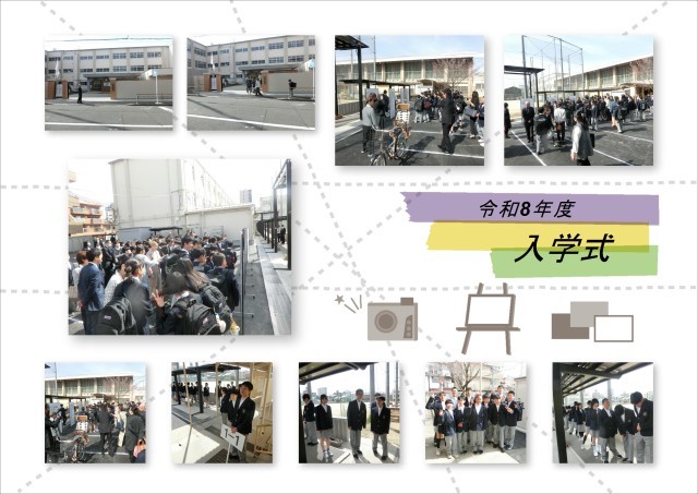 入学式前、新入生たちはクラス発表を確認し、それぞれの教室へ向かいました。少し緊張した表情の中にも、新しい学校生活への期待が感じられるひとときです。教室で入学式の流れの説明を聞き、入学式の開始を待ちました。