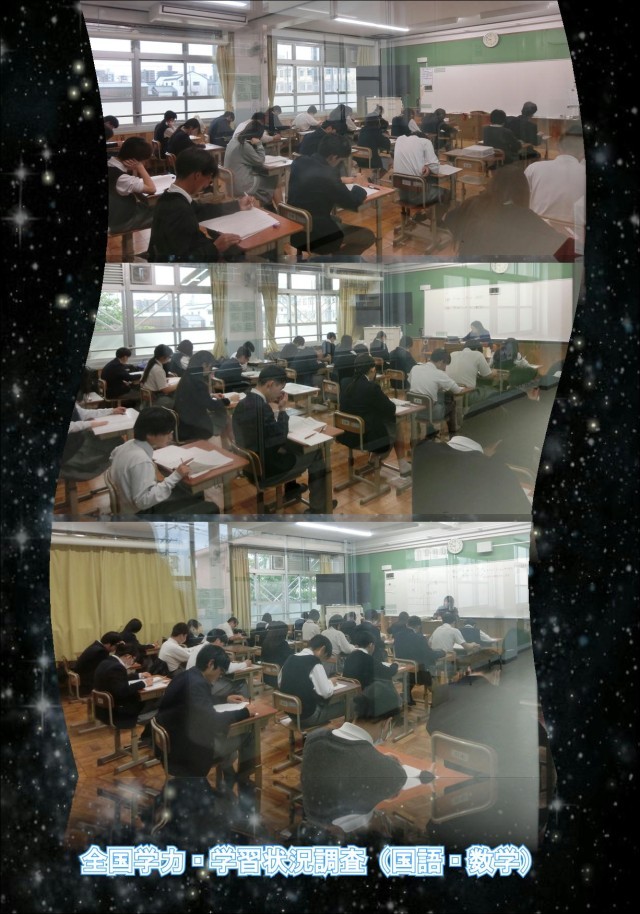 本日、1・2限に全国学力・学習状況調査が実施され、全校生徒が国語と数学の問題に取り組みました。これまでの学習の成果を発揮し、最後まで真剣に臨む姿が見られました。