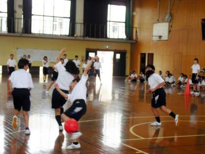 ボールのコースをスルスルとすり抜ける人もいれば、ボールの正面に入ってがっちり自分のものにする人もいます。ボールに当たったり、ボールをキャッチしたりするたびに大きな声が上がっていました。