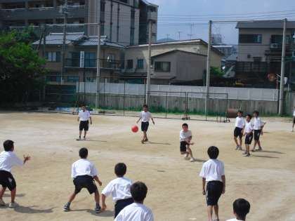 7日(金)、球技大会のトリは1年生です。体育館とテニスコートに分かれて、ドッチボールに取り組みました。
