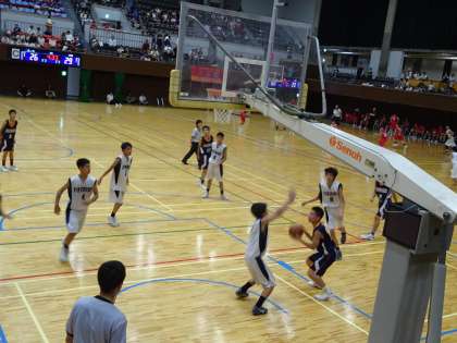 男子バスケットボール部の3回戦が、西京極のハンナリーズアリーナで行われ、伏見中学校と対戦しました。