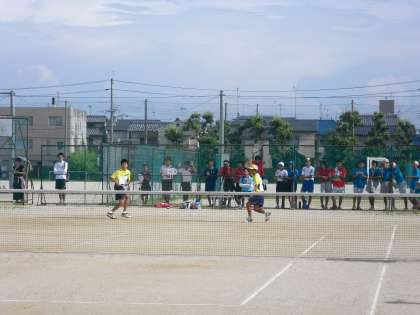府大会進出のかかった第3戦は久世中学との戦いとなりました。1年生を含む1番ペアとの対戦は2−4で逆転負け。相手校の1番手(2番ペア)との対戦も0−4で押し切られてしまいました。