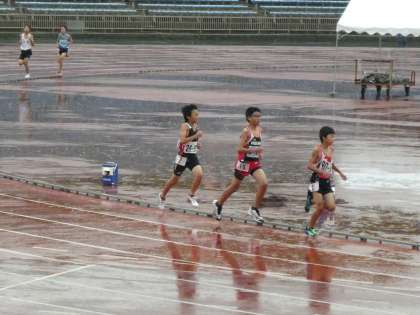 9月16日(土)、冷たい雨が降り続くなか 京都市中学校秋季陸上競技大会が、西京極陸上競技場で行われました。