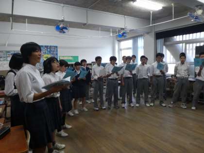 10月6日の合唱コンクールに向けて、音楽の授業で、放課後にクラスで、練習を重ねています。そろそろ音もとれて、歌に磨きがかかり出す頃です。ぜひ、全員が同じ気持ちで一曲を形づくれるように取り組んでください。
