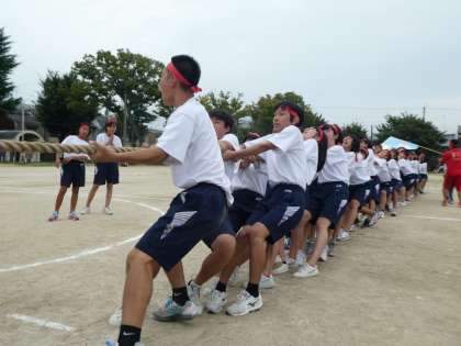 全学年合同で取り組む「綱引き」です。