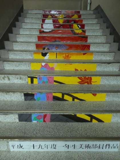 会場に入ると、美術部制作の階段アートが出迎えてくれます。