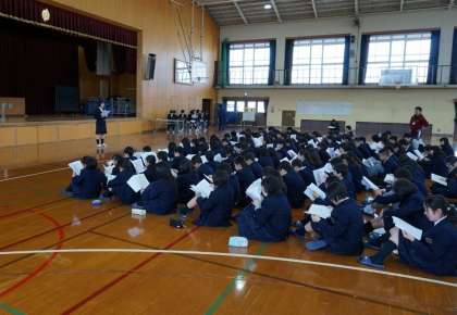 10日(火)5限、1年生を対象に 生徒会本部のメンバーが“生徒会オリエンテーション”を開きました。「そもそも生徒会とは何なのか?」から始まって、年間行予定・組織・目標と実践項目・スローガン等々…。それぞれの内容をわかりやすく説明してくれました。