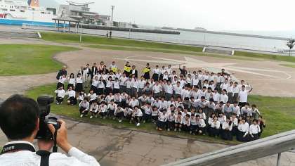 そのあと一行は ドルフィンポートへ。桜島をバックに記念撮影をする予定だったのですが、あいにくの天候で桜島は見えませんでした。残念!