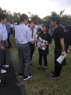 グループごとに民泊家庭の方と、ガッチリ握手。「よろしくお願いします!」各家庭の車で、それぞれ宿泊先まで移動しました。