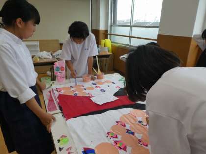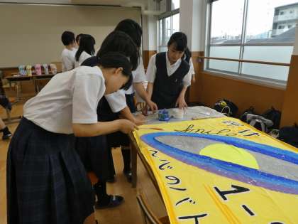 7日(木)の“生徒大会”に向けて、学級旗の制作が急ピッチで進んでいます。