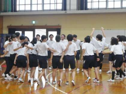 7月5日(木)の球技大会で、3年生は男女混合のバレーボールに取り組みました。