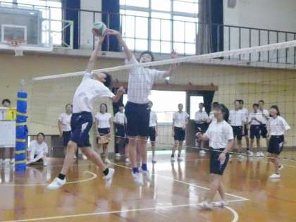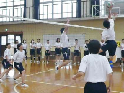 一つひとつのプレーの質が高いのも、さすが3年生。ラリーが続くことはもちろん、サービスエースや時には空中戦も…。