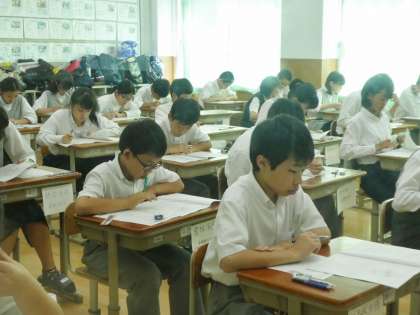 当初は6日(金)に実施の予定でしたが、大雨による休校のためきょうに延期されました。テストというと、「え〜っ!」と考える人もいるかもしれませんが、他の地域では被害のためテストどころではないところもあると聞きます。やるべきことが当たり前にできる幸せを感じながら、精一杯力を尽くしてほしいと思います。