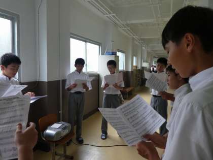 今まで、音楽の授業でのみ取り組んできましたが、きょうから9月21日(金)の合唱コンクールに向けて、学級活動として仕切りなおすこととなります。ここからが、各学級のチームワークの見せ所。“クラス力”が試されます。