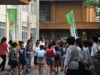 きょう(29日)から31日まで、「よんきゅう合同あいさつ運動」を行っています。登校時間に 代表生徒が小学校へ出かけて、小学生と合同であいさつ運動に取り組みます。地域に住む児童やなつかしい出身小学校の先生とも協力して、いい1日のスタートをサポートしてください。