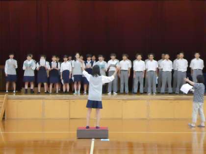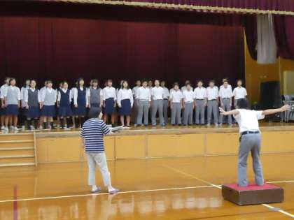 きょうの体育館練習は2年生。音楽科の先生のアドバイスも受けながら、よりよい歌声を目指します。「う〜ん、きれいだ…!」「オオッ、すごい!」という部分も増えてきました。
