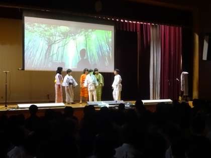 1年生は、校外学習で訪れた“嵯峨・嵐山”についてを寸劇も交えながら発表しました。