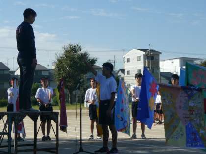 体育委員長による選手宣誓です。「よし!やるぞ!!」という気持ちが、沸き上がってきます。