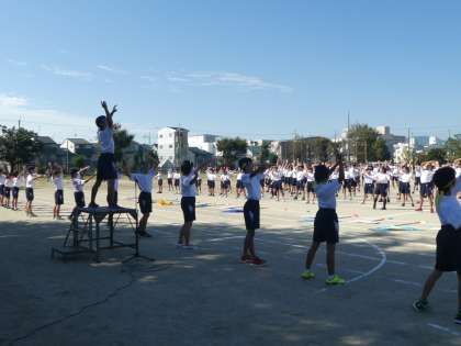 準備体操は“U.S.A.”に乗せて。ダサかっこいい体操に、終了後保護者席から思わず拍手が起きました。