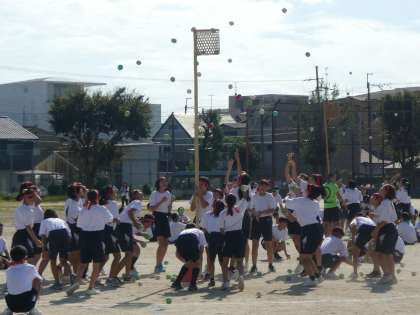 色別対抗にPTAチームも参戦して、玉入れを行いました。
