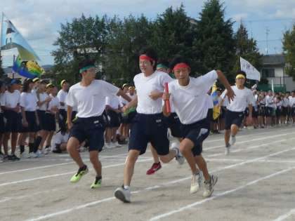 男子600Mリレー。きょうの体育祭 最後の競技だけあって、大いに盛り上がりました。